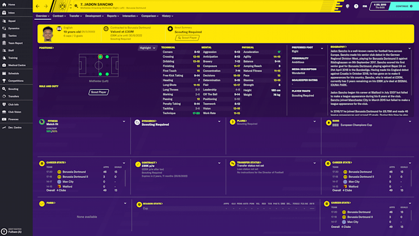 Jadon Sancho Fm20 Best Position, Bundesliga Gio Reyna Joshua Zirkzee And The Players You Should Sign If You Want To Win At Football Manager 2020 If Not Today Then Tomorrow